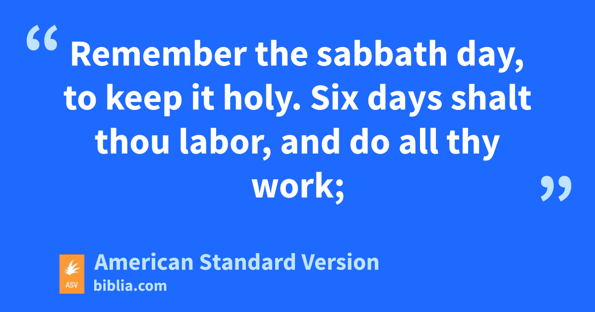 8Remember the sabbath day, to keep it holy. 9Six days shalt thou labor, and do all thy work; 10but the seventh day is a sabbath unto Jehovah thy God: in it thou shalt not do any work, thou, nor thy son, nor thy daughter, thy man-servant, nor thy maid-servant, nor thy cattle, nor thy stranger that is within thy gates: 11for in six days Jehovah made heaven and earth, the sea, and all that in them is, and rested the seventh day: wherefore Jehovah blessed the sabbath day, and hallowed it.