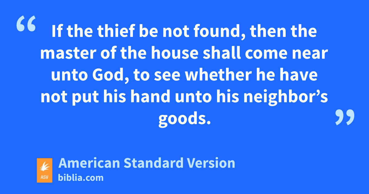 7If a man shall deliver unto his neighbor money or stuff to keep, and it be stolen out of the man’s house; if the thief be found, he shall pay double. 8If the thief be not found, then the master of the house shall come near unto God, to see whether he have not put his hand unto his neighbor’s goods. 9For every matter of trespass, whether it be for ox, for ass, for sheep, for raiment, or for any manner of lost thing, whereof one saith, This is it, the cause of both parties shall come before God; he whom God shall condemn shall pay double unto his neighbor.
