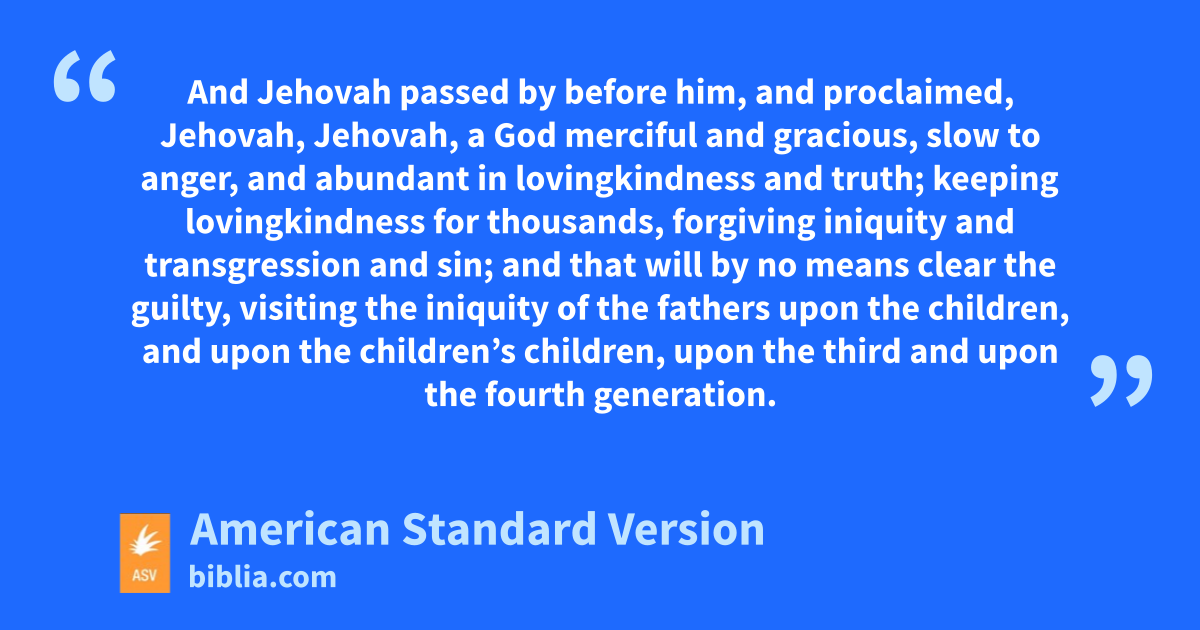34 And Jehovah said unto Moses, Hew thee two tables of stone like unto the first: and I will write upon the tables the words that were on the first tables, which thou brakest. 2And be ready by the morning, and come up in the morning unto mount Sinai, and present thyself there to me on the top of the mount. 3And no man shall come up with thee; neither let any man be seen throughout all the mount; neither let the flocks nor herds feed before that mount. 4And he hewed two tables of stone like unto the first; and Moses rose up early in the morning, and went up unto mount Sinai, as Jehovah had commanded him, and took in his hand two tables of stone. 5And Jehovah descended in the cloud, and stood with him there, and proclaimed the name of Jehovah. 6And Jehovah passed by before him, and proclaimed, Jehovah, Jehovah, a God merciful and gracious, slow to anger, and abundant in lovingkindness and truth; 7keeping lovingkindness for thousands, forgiving iniquity and transgression and sin; and that will by no means clear the guilty, visiting the iniquity of the fathers upon the children, and upon the children’s children, upon the third and upon the fourth generation. 8And Moses made haste, and bowed his head toward the earth, and worshipped. 9And he said, If now I have found favor in thy sight, O Lord, let the Lord, I pray thee, go in the midst of us; for it is a stiffnecked people; and pardon our iniquity and our sin, and take us for thine inheritance.