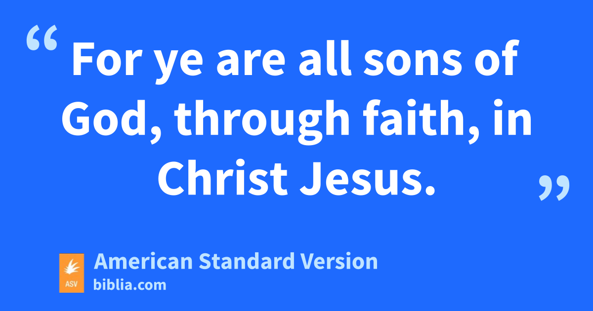 23But before faith came, we were kept in ward under the law, shut up unto the faith which should afterwards be revealed. 24So that the law is become our tutor to bring us unto Christ, that we might be justified by faith. 25But now that faith is come, we are no longer under a tutor. 26For ye are all sons of God, through faith, in Christ Jesus. 27For as many of you as were baptized into Christ did put on Christ. 28There can be neither Jew nor Greek, there can be neither bond nor free, there can be no male and female; for ye all are one man in Christ Jesus. 29And if ye are Christ’s, then are ye Abraham’s seed, heirs according to promise.