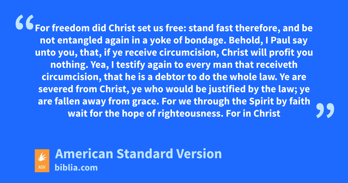 5 For freedom did Christ set us free: stand fast therefore, and be not entangled again in a yoke of bondage.