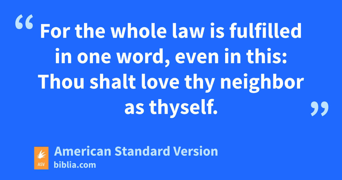 13For ye, brethren, were called for freedom; only use not your freedom for an occasion to the flesh, but through love be servants one to another. 14For the whole law is fulfilled in one word, even in this: Thou shalt love thy neighbor as thyself. 15But if ye bite and devour one another, take heed that ye be not consumed one of another.