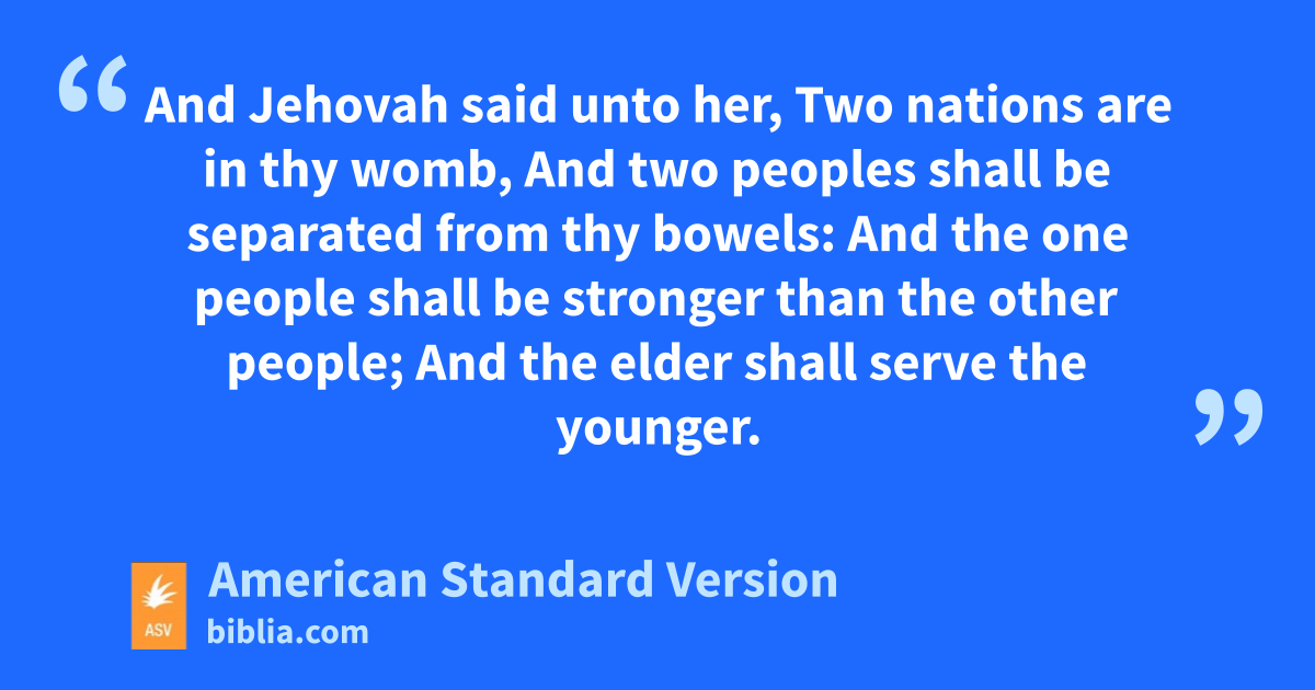 19And these are the generations of Isaac, Abraham’s son: Abraham begat Isaac: 20and Isaac was forty years old when he took Rebekah, the daughter of Bethuel the Syrian of Paddan-aram, the sister of Laban the Syrian, to be his wife. 21And Isaac entreated Jehovah for his wife, because she was barren: and Jehovah was entreated of him, and Rebekah his wife conceived. 22And the children struggled together within her; and she said, If it be so, wherefore do I live? And she went to inquire of Jehovah. 23And Jehovah said unto her,