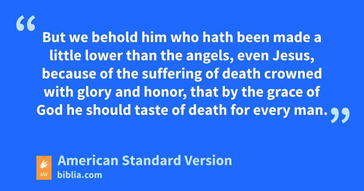 9But we behold him who hath been made a little lower than the angels, even Jesus, because of the suffering of death crowned with glory and honor, that by the grace of God he should taste of death for every man. 10For it became him, for whom are all things, and through whom are all things, in bringing many sons unto glory, to make the author of their salvation perfect through sufferings. 11For both he that sanctifieth and they that are sanctified are all of one: for which cause he is not ashamed to call them brethren, 12saying,