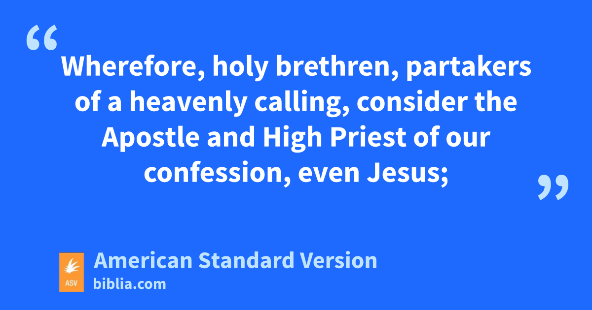 3 Wherefore, holy brethren, partakers of a heavenly calling, consider the Apostle and High Priest of our confession, even Jesus; 2who was faithful to him that appointed him, as also was Moses in all his house. 3For he hath been counted worthy of more glory than Moses, by so much as he that built the house hath more honor than the house. 4For every house is builded by some one; but he that built all things is God. 5And Moses indeed was faithful in all his house as a servant, for a testimony of those things which were afterward to be spoken; 6but Christ as a son, over his house; whose house are we, if we hold fast our boldness and the glorying of our hope firm unto the end. 7Wherefore, even as the Holy Spirit saith,