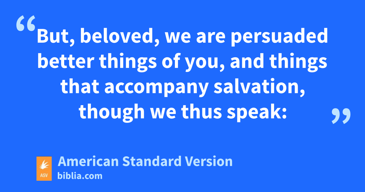 9But, beloved, we are persuaded better things of you, and things that accompany salvation, though we thus speak: 10for God is not unrighteous to forget your work and the love which ye showed toward his name, in that ye ministered unto the saints, and still do minister. 11And we desire that each one of you may show the same diligence unto the fulness of hope even to the end: 12that ye be not sluggish, but imitators of them who through faith and patience inherit the promises.