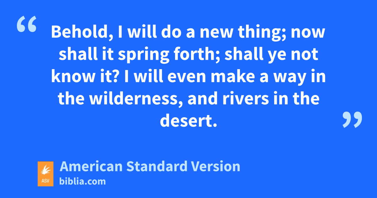 14Thus saith Jehovah, your Redeemer, the Holy One of Israel: For your sake I have sent to Babylon, and I will bring down all of them as fugitives, even the Chaldeans, in the ships of their rejoicing. 15I am Jehovah, your Holy One, the Creator of Israel, your King. 16Thus saith Jehovah, who maketh a way in the sea, and a path in the mighty waters; 17who bringeth forth the chariot and horse, the army and the mighty man (they lie down together, they shall not rise; they are extinct, they are quenched as a wick): 18Remember ye not the former things, neither consider the things of old. 19Behold, I will do a new thing; now shall it spring forth; shall ye not know it? I will even make a way in the wilderness, and rivers in the desert. 20The beasts of the field shall honor me, the jackals and the ostriches; because I give waters in the wilderness, and rivers in the desert, to give drink to my people, my chosen, 21the people which I formed for myself, that they might set forth my praise.