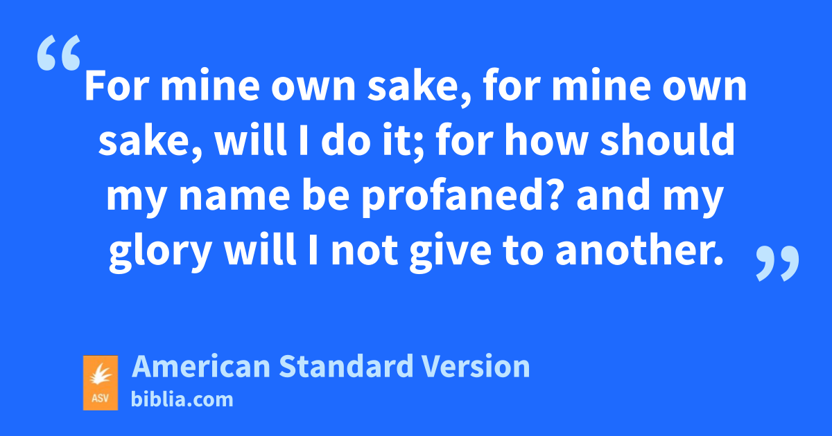 48 Hear ye this, O house of Jacob, who are called by the name of Israel, and are come forth out of the waters of Judah; who swear by the name of Jehovah, and make mention of the God of Israel, but not in truth, nor in righteousness 2(for they call themselves of the holy city, and stay themselves upon the God of Israel; Jehovah of hosts is his name): 3I have declared the former things from of old; yea, they went forth out of my mouth, and I showed them: suddenly I did them, and they came to pass. 4Because I knew that thou art obstinate, and thy neck is an iron sinew, and thy brow brass; 5therefore I have declared it to thee from of old; before it came to pass I showed it thee; lest thou shouldest say, Mine idol hath done them, and my graven image, and my molten image, hath commanded them. 6Thou hast heard it; behold all this; and ye, will ye not declare it? I have showed thee new things from this time, even hidden things, which thou hast not known. 7They are created now, and not from of old; and before this day thou heardest them not; lest thou shouldest say, Behold, I knew them. 8Yea, thou heardest not; yea, thou knewest not; yea, from of old thine ear was not opened: for I knew that thou didst deal very treacherously, and wast called a transgressor from the womb. 9For my name’s sake will I defer mine anger, and for my praise will I refrain for thee, that I cut thee not off. 10Behold, I have refined thee, but not as silver; I have chosen thee in the furnace of affliction. 11For mine own sake, for mine own sake, will I do it; for how should my name be profaned? and my glory will I not give to another.