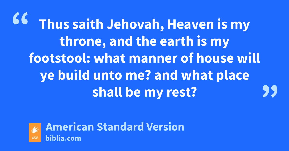 66 Thus saith Jehovah, Heaven is my throne, and the earth is my footstool: what manner of house will ye build unto me? and what place shall be my rest? 2For all these things hath my hand made, and so all these things came to be, saith Jehovah: but to this man will I look, even to him that is poor and of a contrite spirit, and that trembleth at my word. 3He that killeth an ox is as he that slayeth a man; he that sacrificeth a lamb, as he that breaketh a dog’s neck; he that offereth an oblation, as he that offereth swine’s blood; he that burneth frankincense, as he that blesseth an idol. Yea, they have chosen their own ways, and their soul delighteth in their abominations: 4I also will choose their delusions, and will bring their fears upon them; because when I called, none did answer; when I spake, they did not hear: but they did that which was evil in mine eyes, and chose that wherein I delighted not.