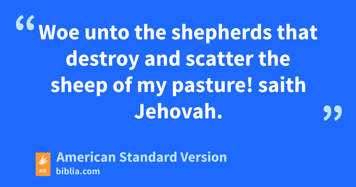 23 Woe unto the shepherds that destroy and scatter the sheep of my pasture! saith Jehovah. 2Therefore thus saith Jehovah, the God of Israel, against the shepherds that feed my people: Ye have scattered my flock, and driven them away, and have not visited them; behold, I will visit upon you the evil of your doings, saith Jehovah. 3And I will gather the remnant of my flock out of all the countries whither I have driven them, and will bring them again to their folds; and they shall be fruitful and multiply. 4And I will set up shepherds over them, who shall feed them; and they shall fear no more, nor be dismayed, neither shall any be lacking, saith Jehovah.