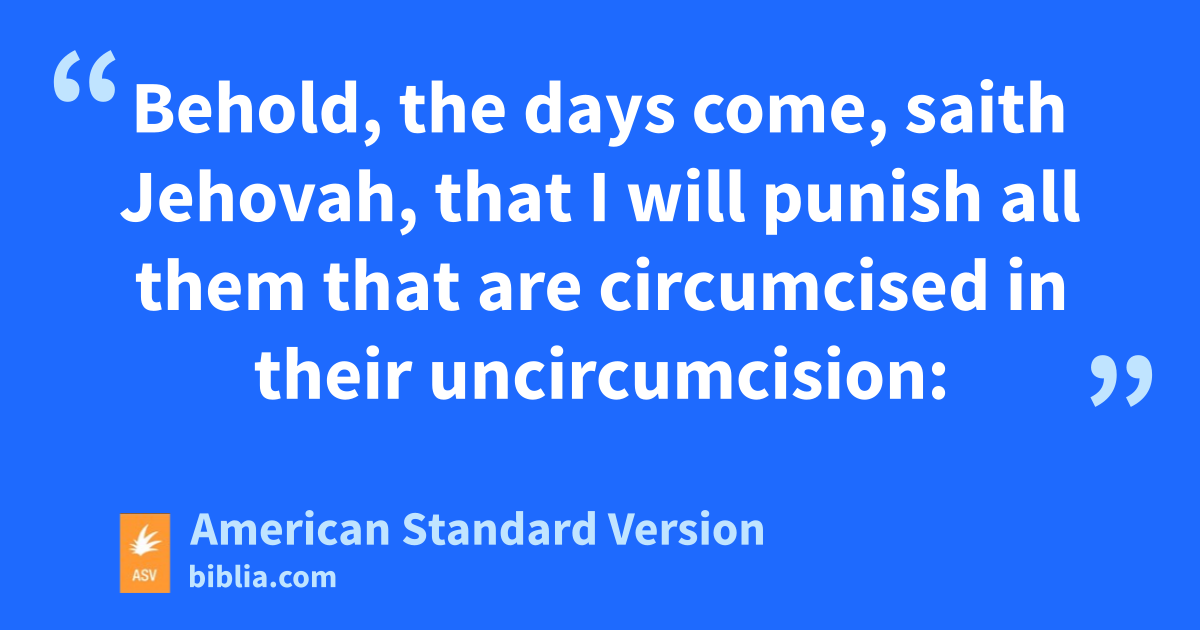 25Behold, the days come, saith Jehovah, that I will punish all them that are circumcised in their uncircumcision: 26Egypt, and Judah, and Edom, and the children of Ammon, and Moab, and all that have the corners of their hair cut off, that dwell in the wilderness; for all the nations are uncircumcised, and all the house of Israel are uncircumcised in heart.