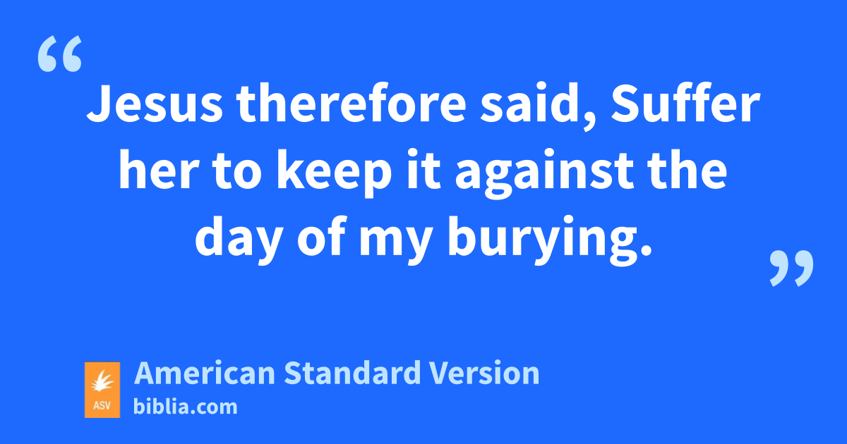 12 Jesus therefore six days before the passover came to Bethany, where Lazarus was, whom Jesus raised from the dead. 2So they made him a supper there: and Martha served; but Lazarus was one of them that sat at meat with him. 3Mary therefore took a pound of ointment of pure nard, very precious, and anointed the feet of Jesus, and wiped his feet with her hair: and the house was filled with the odor of the ointment. 4But Judas Iscariot, one of his disciples, that should betray him, saith, 5Why was not this ointment sold for three hundred shillings, and given to the poor? 6Now this he said, not because he cared for the poor; but because he was a thief, and having the bag took away what was put therein. 7Jesus therefore said, Suffer her to keep it against the day of my burying. 8For the poor ye have always with you; but me ye have not always.