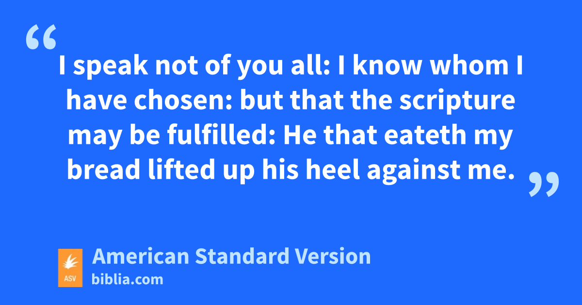 21When Jesus had thus said, he was troubled in the spirit, and testified, and said, Verily, verily, I say unto you, that one of you shall betray me. 22The disciples looked one on another, doubting of whom he spake. 23There was at the table reclining in Jesus’ bosom one of his disciples, whom Jesus loved. 24Simon Peter therefore beckoneth to him, and saith unto him, Tell us who it is of whom he speaketh. 25He leaning back, as he was, on Jesus’ breast saith unto him, Lord, who is it? 26Jesus therefore answereth, He it is, for whom I shall dip the sop, and give it him. So when he had dipped the sop, he taketh and giveth it to Judas, the son of Simon Iscariot. 27And after the sop, then entered Satan into him. Jesus therefore saith unto him, What thou doest, do quickly. 28Now no man at the table knew for what intent he spake this unto him. 29For some thought, because Judas had the bag, that Jesus said unto him, Buy what things we have need of for the feast; or, that he should give something to the poor. 30He then having received the sop went out straightway: and it was night.