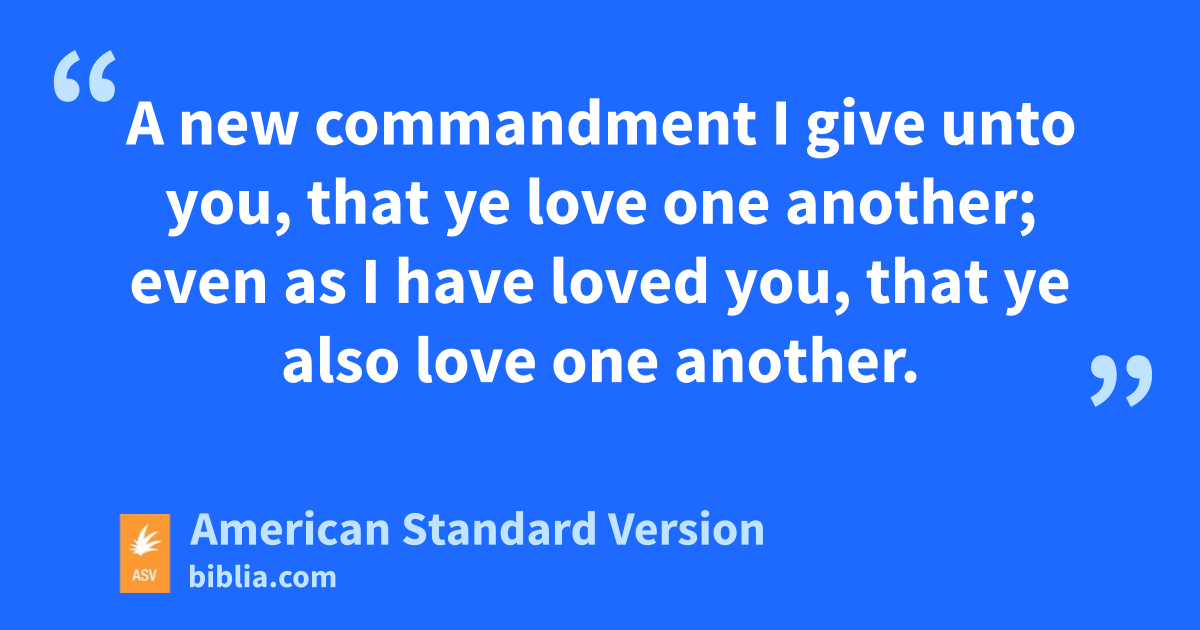 31When therefore he was gone out, Jesus saith, Now is the Son of man glorified, and God is glorified in him; 32and God shall glorify him in himself, and straightway shall he glorify him. 33Little children, yet a little while I am with you. Ye shall seek me: and as I said unto the Jews, Whither I go, ye cannot come; so now I say unto you. 34A new commandment I give unto you, that ye love one another; even as I have loved you, that ye also love one another. 35By this shall all men know that ye are my disciples, if ye have love one to another.