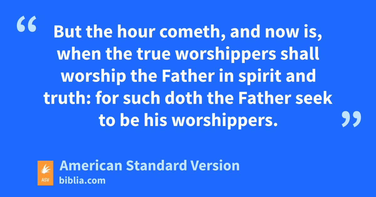 4 When therefore the Lord knew that the Pharisees had heard that Jesus was making and baptizing more disciples than John 2(although Jesus himself baptized not, but his disciples), 3he left Judaea, and departed again into Galilee. 4And he must needs pass through Samaria. 5So he cometh to a city of Samaria, called Sychar, near to the parcel of ground that Jacob gave to his son Joseph: 6and Jacob’s well was there. Jesus therefore, being wearied with his journey, sat thus by the well. It was about the sixth hour. 7There cometh a woman of Samaria to draw water: Jesus saith unto her, Give me to drink. 8For his disciples were gone away into the city to buy food. 9The Samaritan woman therefore saith unto him, How is it that thou, being a Jew, askest drink of me, who am a Samaritan woman? (For Jews have no dealings with Samaritans.) 10Jesus answered and said unto her, If thou knewest the gift of God, and who it is that saith to thee, Give me to drink; thou wouldest have asked of him, and he would have given thee living water. 11The woman saith unto him, Sir, thou hast nothing to draw with, and the well is deep: whence then hast thou that living water? 12Art thou greater than our father Jacob, who gave us the well, and drank thereof himself, and his sons, and his cattle? 13Jesus answered and said unto her, Every one that drinketh of this water shall thirst again: 14but whosoever drinketh of the water that I shall give him shall never thirst; but the water that I shall give him shall become in him a well of water springing up unto eternal life. 15The woman saith unto him, Sir, give me this water, that I thirst not, neither come all the way hither to draw. 16Jesus saith unto her, Go, call thy husband, and come hither. 17The woman answered and said unto him, I have no husband. Jesus saith unto her, Thou saidst well, I have no husband: 18for thou hast had five husbands; and he whom thou now hast is not thy husband: this hast thou said truly. 19The woman saith unto him, Sir, I perceive that thou art a prophet. 20Our fathers worshipped in this mountain; and ye say, that in Jerusalem is the place where men ought to worship. 21Jesus saith unto her, Woman, believe me, the hour cometh, when neither in this mountain, nor in Jerusalem, shall ye worship the Father. 22Ye worship that which ye know not: we worship that which we know; for salvation is from the Jews. 23But the hour cometh, and now is, when the true worshippers shall worship the Father in spirit and truth: for such doth the Father seek to be his worshippers. 24God is a Spirit: and they that worship him must worship in spirit and truth. 25The woman saith unto him, I know that Messiah cometh (he that is called Christ): when he is come, he will declare unto us all things. 26Jesus saith unto her, I that speak unto thee am he.