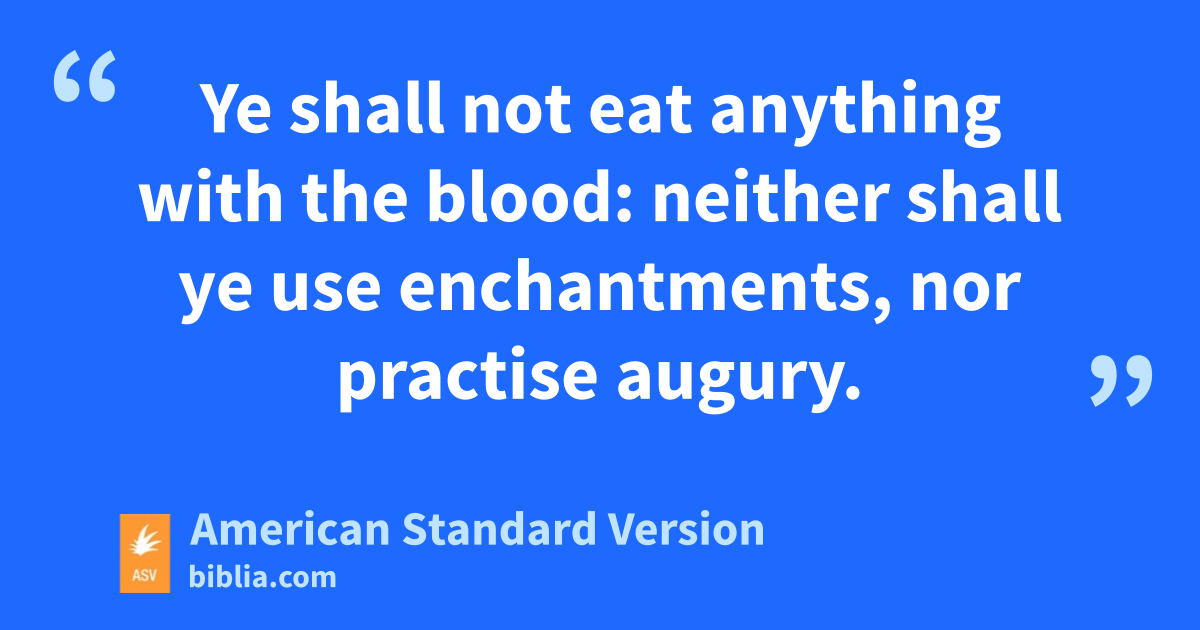 26Ye shall not eat anything with the blood: neither shall ye use enchantments, nor practise augury. 27Ye shall not round the corners of your heads, neither shalt thou mar the corners of thy beard. 28Ye shall not make any cuttings in your flesh for the dead, nor print any marks upon you: I am Jehovah.