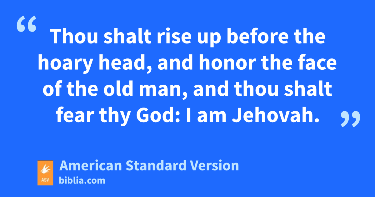 32Thou shalt rise up before the hoary head, and honor the face of the old man, and thou shalt fear thy God: I am Jehovah.
