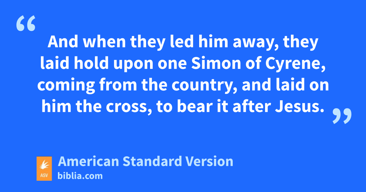 26And when they led him away, they laid hold upon one Simon of Cyrene, coming from the country, and laid on him the cross, to bear it after Jesus.