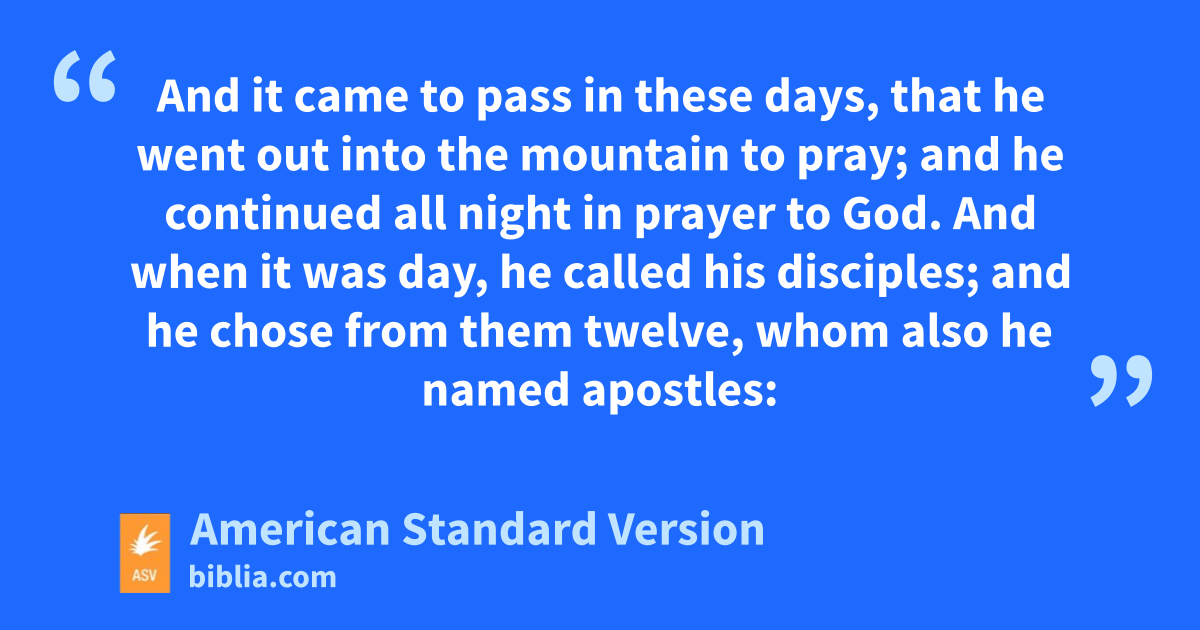 6And it came to pass on another sabbath, that he entered into the synagogue and taught: and there was a man there, and his right hand was withered. 7And the scribes and the Pharisees watched him, whether he would heal on the sabbath; that they might find how to accuse him. 8But he knew their thoughts; and he said to the man that had his hand withered. Rise up, and stand forth in the midst. And he arose and stood forth. 9And Jesus said unto them, I ask you, Is it lawful on the sabbath to do good, or to do harm? to save a life, or to destroy it? 10And he looked round about on them all, and said unto him, Stretch forth thy hand. And he did so: and his hand was restored. 11But they were filled with madness; and communed one with another what they might do to Jesus. 12And it came to pass in these days, that he went out into the mountain to pray; and he continued all night in prayer to God. 13And when it was day, he called his disciples; and he chose from them twelve, whom also he named apostles: 14Simon, whom he also named Peter, and Andrew his brother, and James and John, and Philip and Bartholomew, 15and Matthew and Thomas, and James the son of Alphaeus, and Simon who was called the Zealot, 16and Judas the son of James, and Judas Iscariot, who became a traitor; 17and he came down with them, and stood on a level place, and a great multitude of his disciples, and a great number of the people from all Judaea and Jerusalem, and the sea coast of Tyre and Sidon, who came to hear him, and to be healed of their diseases; 18and they that were troubled with unclean spirits were healed. 19And all the multitude sought to touch him; for power came forth from him, and healed them all.