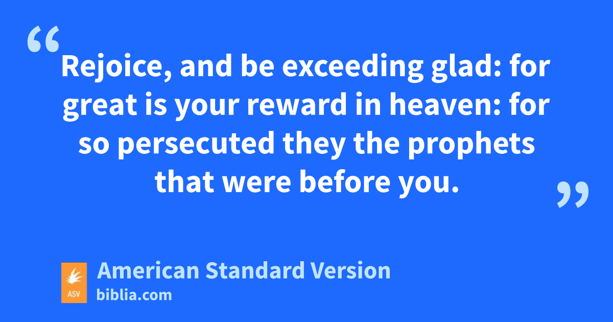 5 And seeing the multitudes, he went up into the mountain: and when he had sat down, his disciples came unto him: 2and he opened his mouth and taught them, saying, 3Blessed are the poor in spirit: for theirs is the kingdom of heaven. 4Blessed are they that mourn: for they shall be comforted. 5Blessed are the meek: for they shall inherit the earth. 6Blessed are they that hunger and thirst after righteousness: for they shall be filled. 7Blessed are the merciful: for they shall obtain mercy. 8Blessed are the pure in heart: for they shall see God. 9Blessed are the peacemakers: for they shall be called sons of God. 10Blessed are they that have been persecuted for righteousness’ sake: for theirs is the kingdom of heaven. 11Blessed are ye when men shall reproach you, and persecute you, and say all manner of evil against you falsely, for my sake. 12Rejoice, and be exceeding glad: for great is your reward in heaven: for so persecuted they the prophets that were before you.