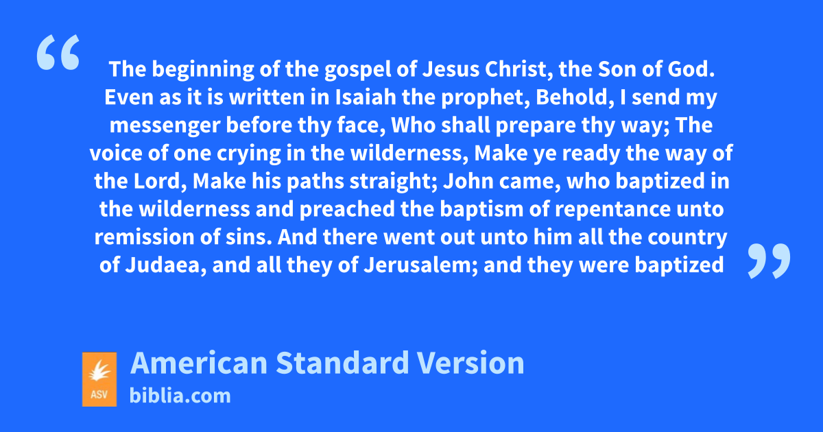 4John came, who baptized in the wilderness and preached the baptism of repentance unto remission of sins. 5And there went out unto him all the country of Judaea, and all they of Jerusalem; and they were baptized of him in the river Jordan, confessing their sins. 6And John was clothed with camel’s hair, and had a leathern girdle about his loins, and did eat locusts and wild honey. 7And he preached, saying, There cometh after me he that is mightier than I, the latchet of whose shoes I am not worthy to stoop down and unloose. 8I baptized you in water; but he shall baptize you in the Holy Spirit.