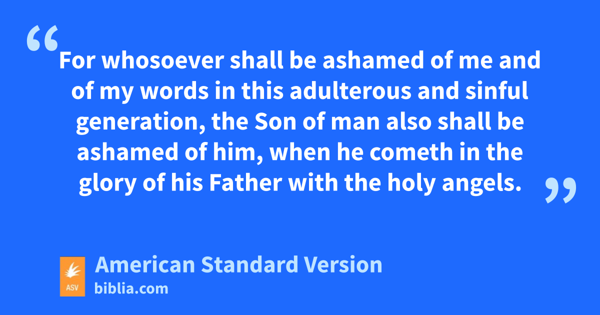 31And he began to teach them, that the Son of man must suffer many things, and be rejected by the elders, and the chief priests, and the scribes, and be killed, and after three days rise again. 32And he spake the saying openly. And Peter took him, and began to rebuke him. 33But he turning about, and seeing his disciples, rebuked Peter, and saith, Get thee behind me, Satan; for thou mindest not the things of God, but the things of men. 34And he called unto him the multitude with his disciples, and said unto them, If any man would come after me, let him deny himself, and take up his cross, and follow me. 35For whosoever would save his life shall lose it; and whosoever shall lose his life for my sake and the gospel’s shall save it. 36For what doth it profit a man, to gain the whole world, and forfeit his life? 37For what should a man give in exchange for his life? 38For whosoever shall be ashamed of me and of my words in this adulterous and sinful generation, the Son of man also shall be ashamed of him, when he cometh in the glory of his Father with the holy angels.