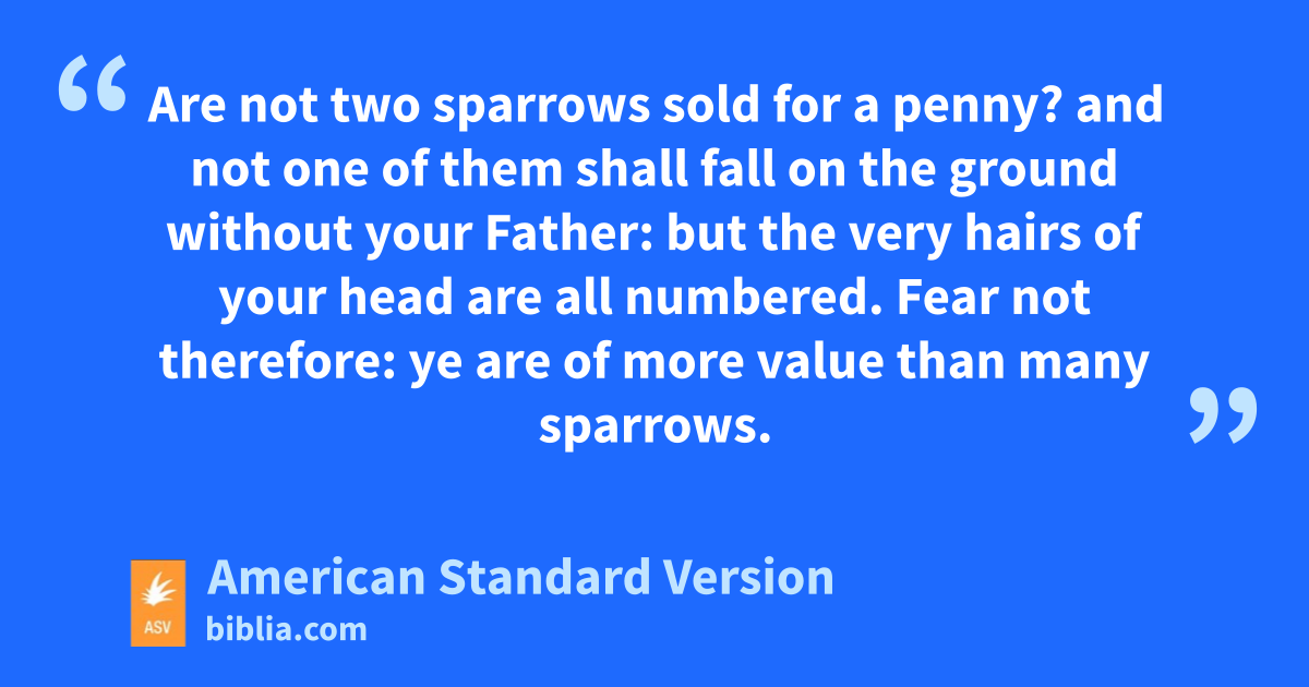 24A disciple is not above his teacher, nor a servant above his lord. 25It is enough for the disciple that he be as his teacher, and the servant as his lord. If they have called the master of the house Beelzebub, how much more them of his household! 26Fear them not therefore: for there is nothing covered, that shall not be revealed; and hid, that shall not be known. 27What I tell you in the darkness, speak ye in the light; and what ye hear in the ear, proclaim upon the house-tops. 28And be not afraid of them that kill the body, but are not able to kill the soul: but rather fear him who is able to destroy both soul and body in hell. 29Are not two sparrows sold for a penny? and not one of them shall fall on the ground without your Father: 30but the very hairs of your head are all numbered. 31Fear not therefore: ye are of more value than many sparrows. 32Every one therefore who shall confess me before men, him will I also confess before my Father who is in heaven. 33But whosoever shall deny me before men, him will I also deny before my Father who is in heaven.