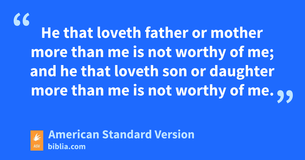 34Think not that I came to send peace on the earth: I came not to send peace, but a sword. 35For I came to set a man at variance against his father, and the daughter against her mother, and the daughter in law against her mother in law: 36and a man’s foes shall be they of his own household. 37He that loveth father or mother more than me is not worthy of me; and he that loveth son or daughter more than me is not worthy of me. 38And he that doth not take his cross and follow after me, is not worthy of me. 39He that findeth his life shall lose it; and he that loseth his life for my sake shall find it.