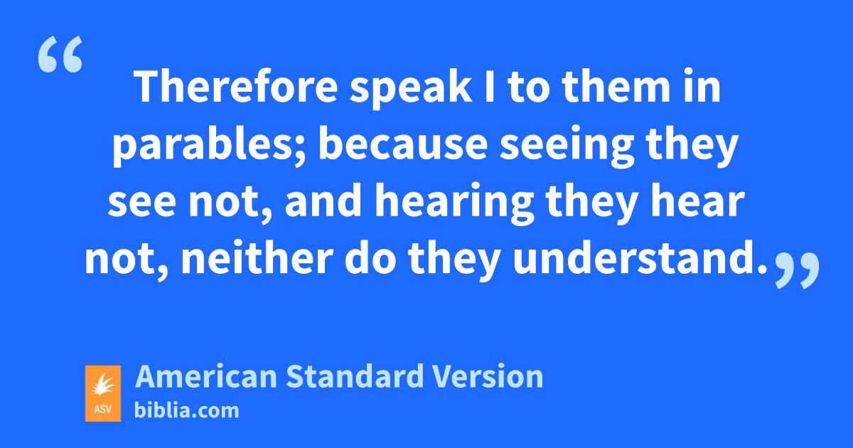 10And the disciples came, and said unto him, Why speakest thou unto them in parables? 11And he answered and said unto them, Unto you it is given to know the mysteries of the kingdom of heaven, but to them it is not given. 12For whosoever hath, to him shall be given, and he shall have abundance: but whosoever hath not, from him shall be taken away even that which he hath. 13Therefore speak I to them in parables; because seeing they see not, and hearing they hear not, neither do they understand. 14And unto them is fulfilled the prophecy of Isaiah, which saith,
