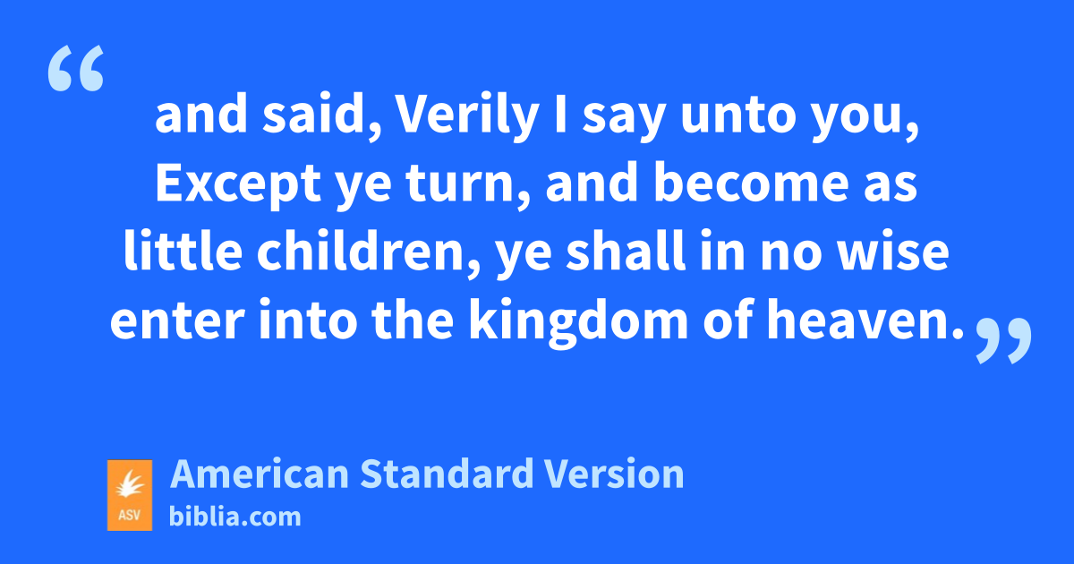 18 In that hour came the disciples unto Jesus, saying, Who then is greatest in the kingdom of heaven? 2And he called to him a little child, and set him in the midst of them, 3and said, Verily I say unto you, Except ye turn, and become as little children, ye shall in no wise enter into the kingdom of heaven. 4Whosoever therefore shall humble himself as this little child, the same is the greatest in the kingdom of heaven. 5And whoso shall receive one such little child in my name receiveth me: 6but whoso shall cause one of these little ones that believe on me to stumble, it is profitable for him that a great millstone should be hanged about his neck, and that he should be sunk in the depth of the sea.
