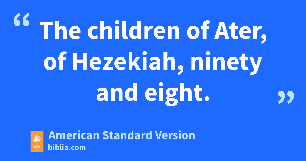The number of the men of the people of Israel: 8The children of Parosh, two thousand a hundred and seventy and two. 9The children of Shephatiah, three hundred seventy and two. 10The children of Arah, six hundred fifty and two. 11The children of Pahath-moab, of the children of Jeshua and Joab, two thousand and eight hundred and eighteen. 12The children of Elam, a thousand two hundred fifty and four. 13The children of Zattu, eight hundred forty and five. 14The children of Zaccai, seven hundred and threescore. 15The children of Binnui, six hundred forty and eight. 16The children of Bebai, six hundred twenty and eight. 17The children of Azgad, two thousand three hundred twenty and two. 18The children of Adonikam, six hundred threescore and seven. 19The children of Bigvai, two thousand threescore and seven. 20The children of Adin, six hundred fifty and five. 21The children of Ater, of Hezekiah, ninety and eight. 22The children of Hashum, three hundred twenty and eight. 23The children of Bezai, three hundred twenty and four. 24The children of Hariph, a hundred and twelve. 25The children of Gibeon, ninety and five. 26The men of Beth-lehem and Netophah, a hundred fourscore and eight. 27The men of Anathoth, a hundred twenty and eight. 28The men of Beth-azmaveth, forty and two. 29The men of Kiriath-jearim, Chephirah, and Beeroth, seven hundred forty and three. 30The men of Ramah and Geba, six hundred twenty and one. 31The men of Michmas, a hundred and twenty and two. 32The men of Beth-el and Ai, a hundred twenty and three. 33The men of the other Nebo, fifty and two. 34The children of the other Elam, a thousand two hundred fifty and four. 35The children of Harim, three hundred and twenty. 36The children of Jericho, three hundred forty and five. 37The children of Lod, Hadid, and Ono, seven hundred twenty and one. 38The children of Senaah, three thousand nine hundred and thirty.