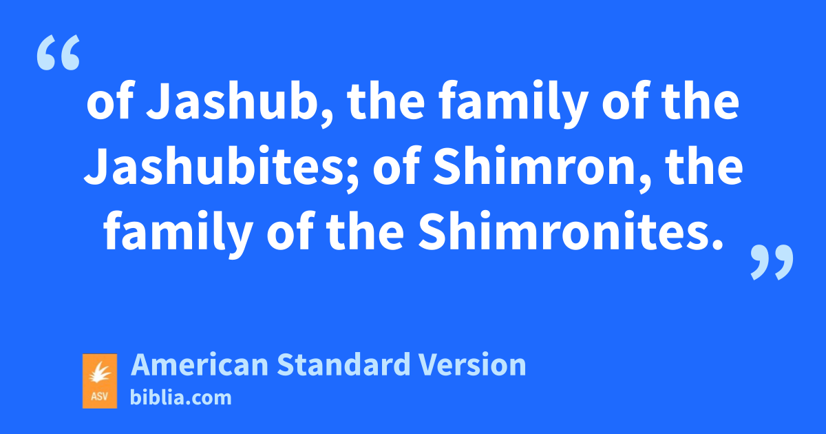 23The sons of Issachar after their families: of Tola, the family of the Tolaites; of Puvah, the family of the Punites; 24of Jashub, the family of the Jashubites; of Shimron, the family of the Shimronites. 25These are the families of Issachar according to those that were numbered of them, threescore and four thousand and three hundred. 26The sons of Zebulun after their families: of Sered, the family of the Seredites; of Elon, the family of the Elonites; of Jahleel, the family of the Jahleelites. 27These are the families of the Zebulunites according to those that were numbered of them, threescore thousand and five hundred.