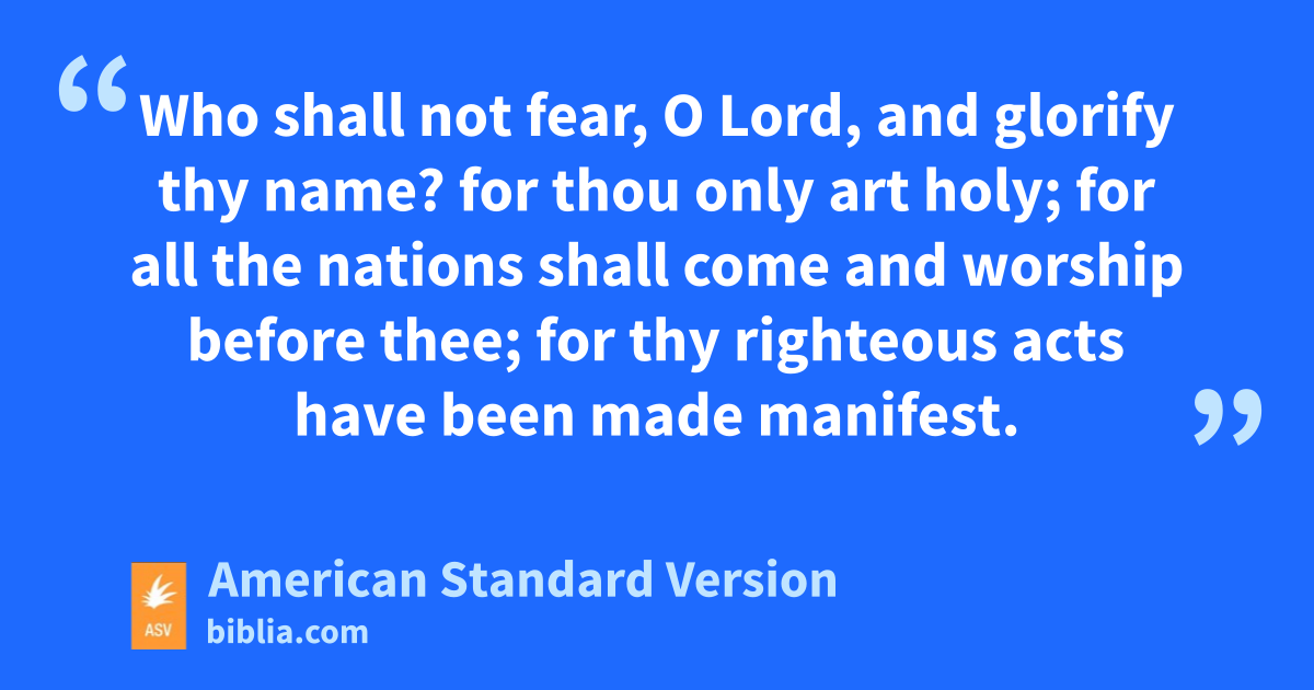 Great and marvellous are thy works, O Lord God, the Almighty; righteous and true are thy ways, thou King of the ages. 4Who shall not fear, O Lord, and glorify thy name? for thou only art holy; for all the nations shall come and worship before thee; for thy righteous acts have been made manifest.