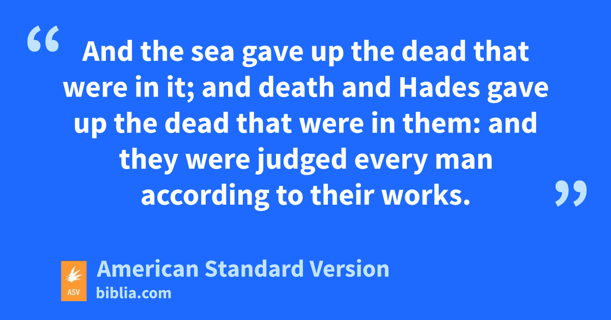 11And I saw a great white throne, and him that sat upon it, from whose face the earth and the heaven fled away; and there was found no place for them. 12And I saw the dead, the great and the small, standing before the throne; and books were opened: and another book was opened, which is the book of life: and the dead were judged out of the things which were written in the books, according to their works. 13And the sea gave up the dead that were in it; and death and Hades gave up the dead that were in them: and they were judged every man according to their works. 14And death and Hades were cast into the lake of fire. This is the second death, even the lake of fire. 15And if any was not found written in the book of life, he was cast into the lake of fire.