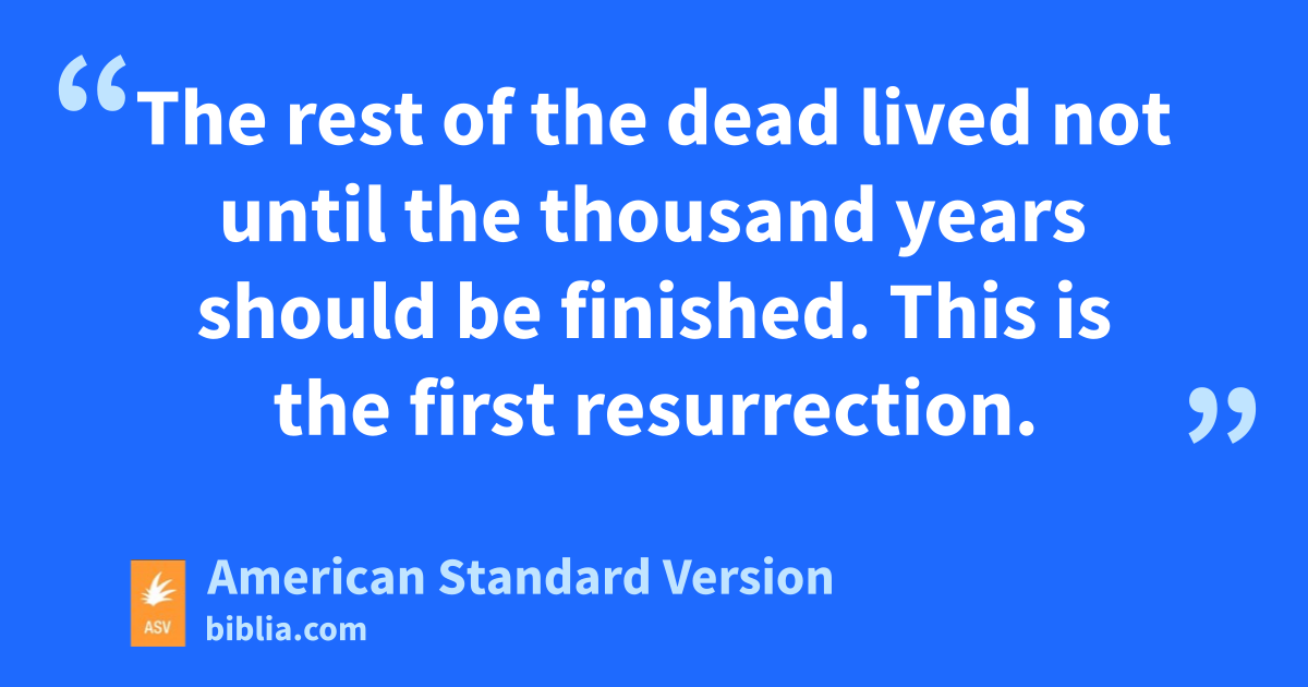 4And I saw thrones, and they sat upon them, and judgment was given unto them: and I saw the souls of them that had been beheaded for the testimony of Jesus, and for the word of God, and such as worshipped not the beast, neither his image, and received not the mark upon their forehead and upon their hand; and they lived, and reigned with Christ a thousand years. 5The rest of the dead lived not until the thousand years should be finished. This is the first resurrection. 6Blessed and holy is he that hath part in the first resurrection: over these the second death hath no power; but they shall be priests of God and of Christ, and shall reign with him a thousand years.