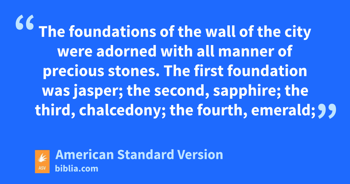 9And there came one of the seven angels who had the seven bowls, who were laden with the seven last plagues; and he spake with me, saying, Come hither, I will show thee the bride, the wife of the Lamb. 10And he carried me away in the Spirit to a mountain great and high, and showed me the holy city Jerusalem, coming down out of heaven from God, 11having the glory of God: her light was like unto a stone most precious, as it were a jasper stone, clear as crystal: 12having a wall great and high; having twelve gates, and at the gates twelve angels; and names written thereon, which are the names of the twelve tribes of the children of Israel: 13on the east were three gates; and on the north three gates; and on the south three gates; and on the west three gates. 14And the wall of the city had twelve foundations, and on them twelve names of the twelve apostles of the Lamb. 15And he that spake with me had for a measure a golden reed to measure the city, and the gates thereof, and the wall thereof. 16And the city lieth foursquare, and the length thereof is as great as the breadth: and he measured the city with the reed, twelve thousand furlongs: the length and the breadth and the height thereof are equal. 17And he measured the wall thereof, a hundred and forty and four cubits, according to the measure of a man, that is, of an angel. 18And the building of the wall thereof was jasper: and the city was pure gold, like unto pure glass. 19The foundations of the wall of the city were adorned with all manner of precious stones. The first foundation was jasper; the second, sapphire; the third, chalcedony; the fourth, emerald; 20the fifth, sardonyx; the sixth, sardius; the seventh, chrysolite; the eighth, beryl; the ninth, topaz; the tenth, chrysoprase; the eleventh, jacinth; the twelfth, amethyst. 21And the twelve gates were twelve pearls; each one of the several gates was of one pearl: and the street of the city was pure gold, as it were transparent glass. 22And I saw no temple therein: for the Lord God the Almighty, and the Lamb, are the temple thereof. 23And the city hath no need of the sun, neither of the moon, to shine upon it: for the glory of God did lighten it, and the lamp thereof is the Lamb. 24And the nations shall walk amidst the light thereof: and the kings of the earth bring their glory into it. 25And the gates thereof shall in no wise be shut by day (for there shall be no night there): 26and they shall bring the glory and the honor of the nations into it: 27and there shall in no wise enter into it anything unclean, or he that maketh an abomination and a lie: but only they that are written in the Lamb’s book of life.