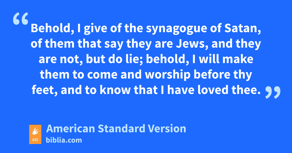 These things saith he that is holy, he that is true, he that hath the key of David, he that openeth and none shall shut, and that shutteth and none openeth: 8I know thy works (behold, I have set before thee a door opened, which none can shut), that thou hast a little power, and didst keep my word, and didst not deny my name. 9Behold, I give of the synagogue of Satan, of them that say they are Jews, and they are not, but do lie; behold, I will make them to come and worship before thy feet, and to know that I have loved thee. 10Because thou didst keep the word of my patience, I also will keep thee from the hour of trial, that hour which is to come upon the whole world, to try them that dwell upon the earth. 11I come quickly: hold fast that which thou hast, that no one take thy crown. 12He that overcometh, I will make him a pillar in the temple of my God, and he shall go out thence no more: and I will write upon him the name of my God, and the name of the city of my God, the new Jerusalem, which cometh down out of heaven from my God, and mine own new name. 13He that hath an ear, let him hear what the Spirit saith to the churches.