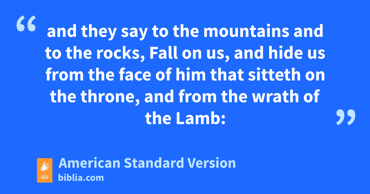 12And I saw when he opened the sixth seal, and there was a great earthquake; and the sun became black as sackcloth of hair, and the whole moon became as blood; 13and the stars of the heaven fell unto the earth, as a fig tree casteth her unripe figs when she is shaken of a great wind. 14And the heaven was removed as a scroll when it is rolled up; and every mountain and island were moved out of their places. 15And the kings of the earth, and the princes, and the chief captains, and the rich, and the strong, and every bondman and freeman, hid themselves in the caves and in the rocks of the mountains; 16and they say to the mountains and to the rocks, Fall on us, and hide us from the face of him that sitteth on the throne, and from the wrath of the Lamb: 17for the great day of their wrath is come; and who is able to stand?