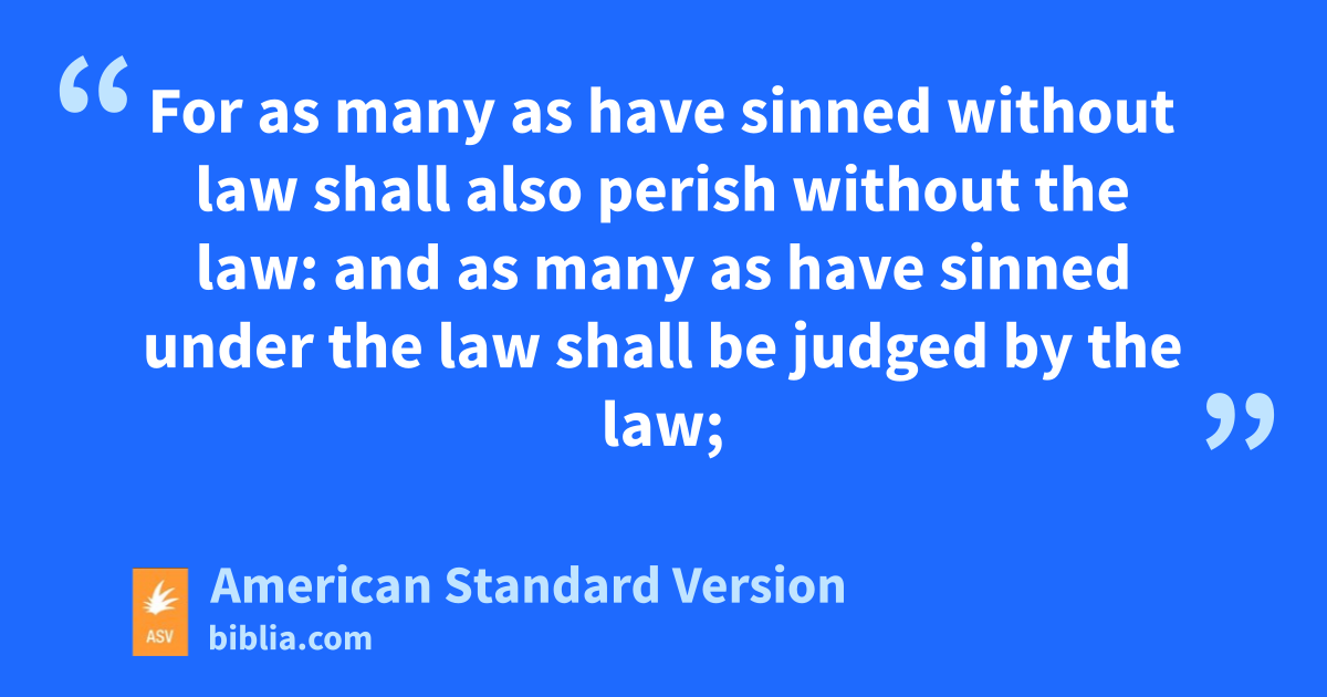 2 Wherefore thou art without excuse, O man, whosoever thou art that judgest: for wherein thou judgest another, thou condemnest thyself; for thou that judgest dost practise the same things. 2And we know that the judgment of God is according to truth against them that practise such things. 3And reckonest thou this, O man, who judgest them that practise such things, and doest the same, that thou shalt escape the judgment of God? 4Or despisest thou the riches of his goodness and forbearance and longsuffering, not knowing that the goodness of God leadeth thee to repentance? 5but after thy hardness and impenitent heart treasurest up for thyself wrath in the day of wrath and revelation of the righteous judgment of God; 6who will render to every man according to his works: 7to them that by patience in well-doing seek for glory and honor and incorruption, eternal life: 8but unto them that are factious, and obey not the truth, but obey unrighteousness, shall be wrath and indignation, 9tribulation and anguish, upon every soul of man that worketh evil, of the Jew first, and also of the Greek; 10but glory and honor and peace to every man that worketh good, to the Jew first, and also to the Greek: 11for there is no respect of persons with God. 12For as many as have sinned without law shall also perish without the law: and as many as have sinned under the law shall be judged by the law; 13for not the hearers of the law are just before God, but the doers of the law shall be justified: 14(for when Gentiles that have not the law do by nature the things of the law, these, not having the law, are the law unto themselves; 15in that they show the work of the law written in their hearts, their conscience bearing witness therewith, and their thoughts one with another accusing or else excusing them); 16in the day when God shall judge the secrets of men, according to my gospel, by Jesus Christ.