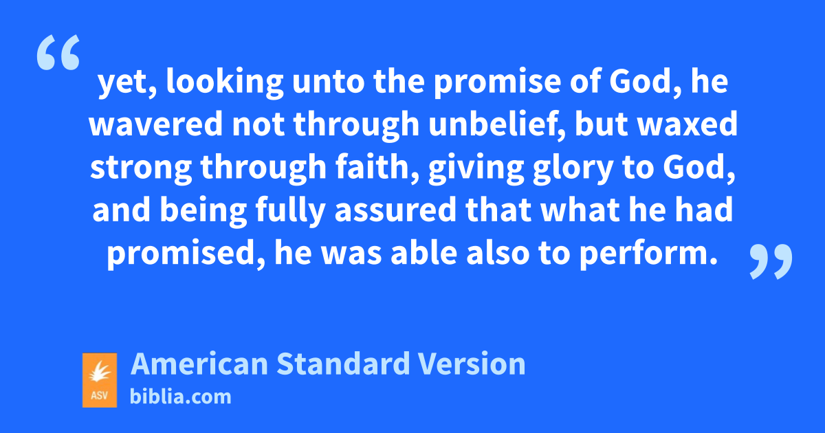 8Blessed is the man to whom the Lord will not reckon sin. 9Is this blessing then pronounced upon the circumcision, or upon the uncircumcision also? for we say, To Abraham his faith was reckoned for righteousness. 10How then was it reckoned? when he was in circumcision, or in uncircumcision? Not in circumcision, but in uncircumcision: 11and he received the sign of circumcision, a seal of the righteousness of the faith which he had while he was in uncircumcision: that he might be the father of all them that believe, though they be in uncircumcision, that righteousness might be reckoned unto them; 12and the father of circumcision to them who not only are of the circumcision, but who also walk in the steps of that faith of our father Abraham which he had in uncircumcision. 13For not through the law was the promise to Abraham or to his seed that he should be heir of the world, but through the righteousness of faith. 14For if they that are of the law are heirs, faith is made void, and the promise is made of none effect: 15for the law worketh wrath; but where there is no law, neither is there transgression. 16For this cause it is of faith, that it may be according to grace; to the end that the promise may be sure to all the seed; not to that only which is of the law, but to that also which is of the faith of Abraham, who is the father of us all 17(as it is written, A father of many nations have I made thee) before him whom he believed, even God, who giveth life to the dead, and calleth the things that are not, as though they were. 18Who in hope believed against hope, to the end that he might become a father of many nations, according to that which had been spoken, So shall thy seed be. 19And without being weakened in faith he considered his own body now as good as dead (he being about a hundred years old), and the deadness of Sarah’s womb; 20yet, looking unto the promise of God, he wavered not through unbelief, but waxed strong through faith, giving glory to God, 21and being fully assured that what he had promised, he was able also to perform. 22Wherefore also it was reckoned unto him for righteousness. 23Now it was not written for his sake alone, that it was reckoned unto him; 24but for our sake also, unto whom it shall be reckoned, who believe on him that raised Jesus our Lord from the dead, 25who was delivered up for our trespasses, and was raised for our justification.