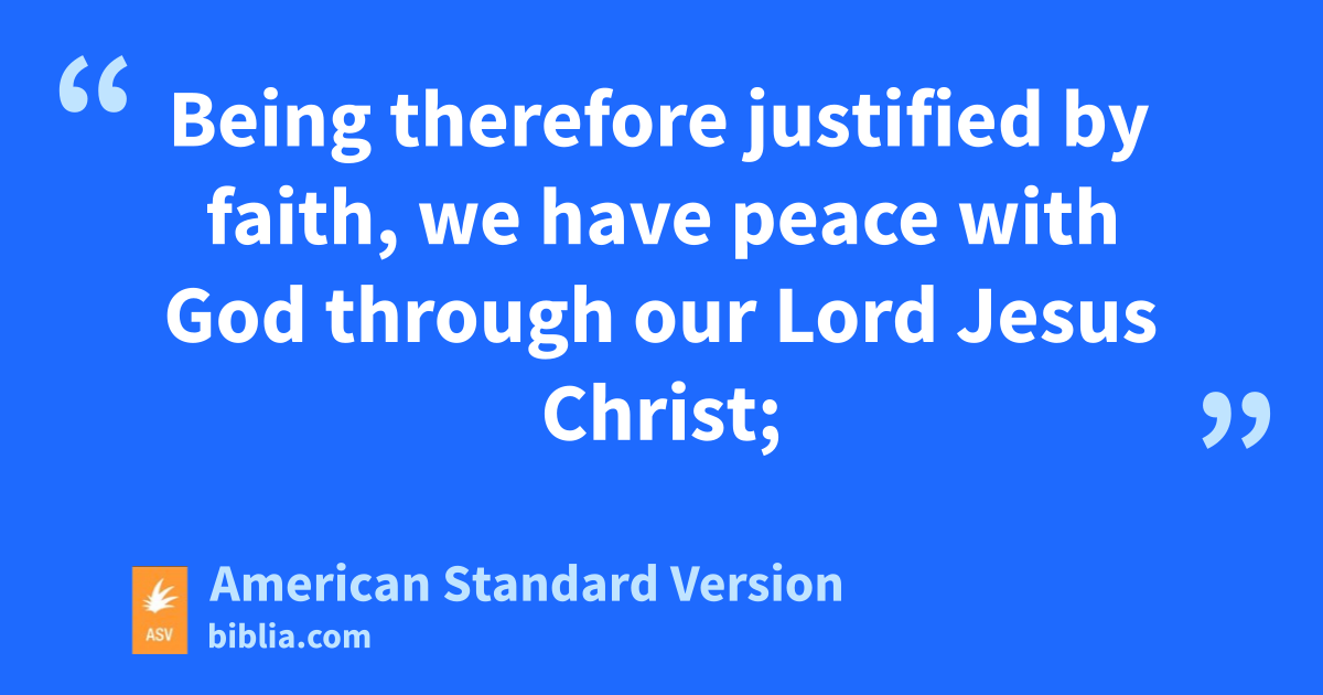 5 Being therefore justified by faith, we have peace with God through our Lord Jesus Christ; 2through whom also we have had our access by faith into this grace wherein we stand; and we rejoice in hope of the glory of God. 3And not only so, but we also rejoice in our tribulations: knowing that tribulation worketh stedfastness; 4and stedfastness, approvedness; and approvedness, hope: 5and hope putteth not to shame; because the love of God hath been shed abroad in our hearts through the Holy Spirit which was given unto us. 6For while we were yet weak, in due season Christ died for the ungodly. 7For scarcely for a righteous man will one die: for peradventure for the good man some one would even dare to die. 8But God commendeth his own love toward us, in that, while we were yet sinners, Christ died for us. 9Much more then, being now justified by his blood, shall we be saved from the wrath of God through him. 10For if, while we were enemies, we were reconciled to God through the death of his Son, much more, being reconciled, shall we be saved by his life; 11and not only so, but we also rejoice in God through our Lord Jesus Christ, through whom we have now received the reconciliation.