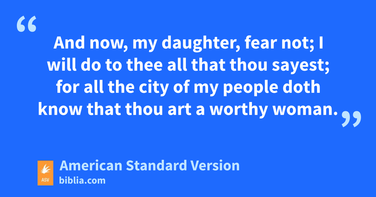 6And she went down unto the threshing-floor, and did according to all that her mother-in-law bade her. 7And when Boaz had eaten and drunk, and his heart was merry, he went to lie down at the end of the heap of grain: and she came softly, and uncovered his feet, and laid her down. 8And it came to pass at midnight, that the man was afraid, and turned himself; and, behold, a woman lay at his feet. 9And he said, Who art thou? And she answered, I am Ruth thy handmaid: spread therefore thy skirt over thy handmaid; for thou art a near kinsman. 10And he said, Blessed be thou of Jehovah, my daughter: thou hast showed more kindness in the latter end than at the beginning, inasmuch as thou followedst not young men, whether poor or rich. 11And now, my daughter, fear not; I will do to thee all that thou sayest; for all the city of my people doth know that thou art a worthy woman. 12And now it is true that I am a near kinsman; howbeit there is a kinsman nearer than I. 13Tarry this night, and it shall be in the morning, that if he will perform unto thee the part of a kinsman, well; let him do the kinsman’s part: but if he will not do the part of a kinsman to thee, then will I do the part of a kinsman to thee, as Jehovah liveth: lie down until the morning.