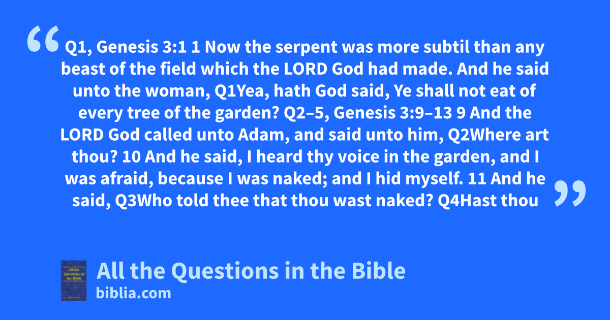 There are many books with questions about the Bible, but the Bible is filled with its own questions. This compilation of questions is from the King James Version (KJV) of the Bible. You may ask your own question: How can I use these questions? Hopefully, you will be motivated to search the Bible further for the larger context surrounding the questions. For those who preach and teach, the...