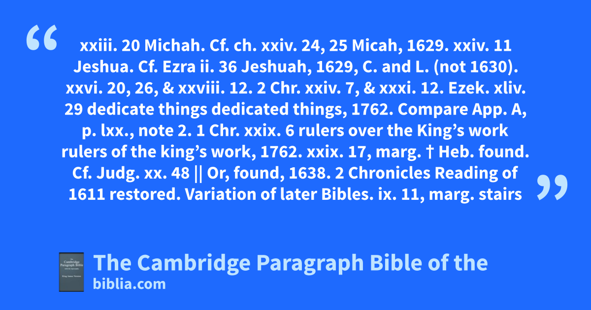 List of Passages in which the Readings of the Edition of the Authorized Bible of 1611 have been restored in the present Volume.