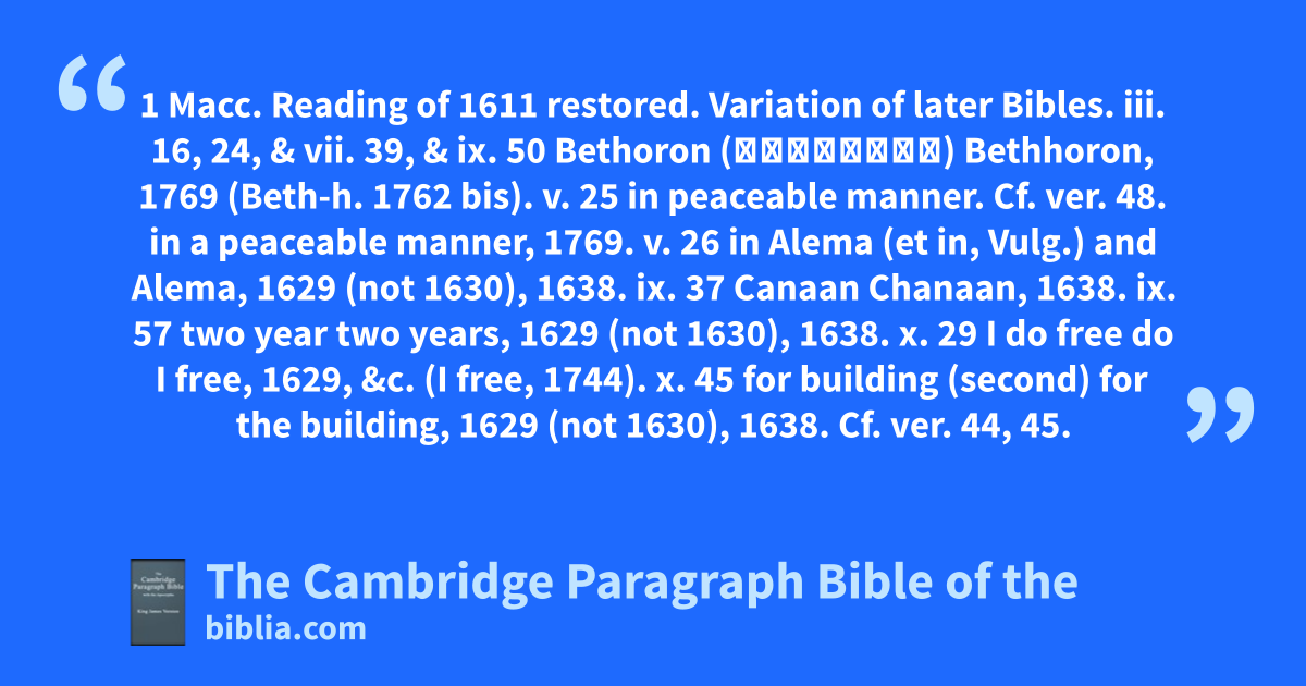 2 Macc. | Reading of 1611 restored. | Variation of later Bibles. |
