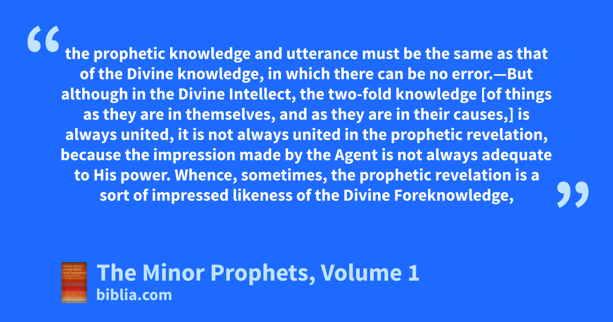 the prophetic knowledge and utterance must be the same as that of the Divine knowledge, in which there can be no error.—But although in the Divine Intellect, the two-fold knowledge [of things as they are in themselves, and as they are in their causes,] is always united, it is not always united in the prophetic revelation, because the impression made by the Agent is not always adequate to His power. Whence, sometimes, the prophetic revelation is a sort of impressed likeness of the Divine Foreknowledge,