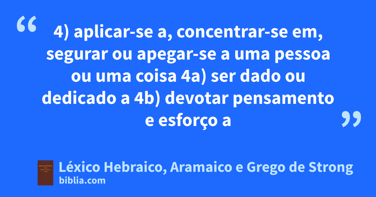 4) aplicar-se a, concentrar-se em, segurar ou apegar-se a uma pessoa ou uma coisa 4a) ser dado ou dedicado a 4b) devotar pensamento e esforço a