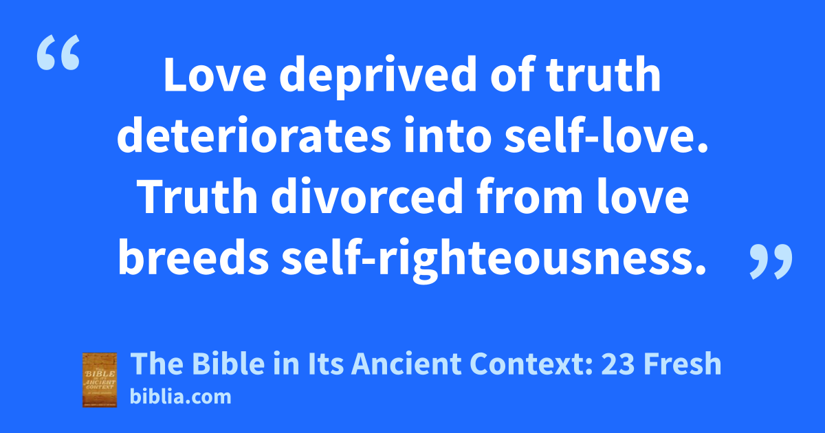 Love deprived of truth deteriorates into self-love. Truth divorced from love breeds self-righteousness.