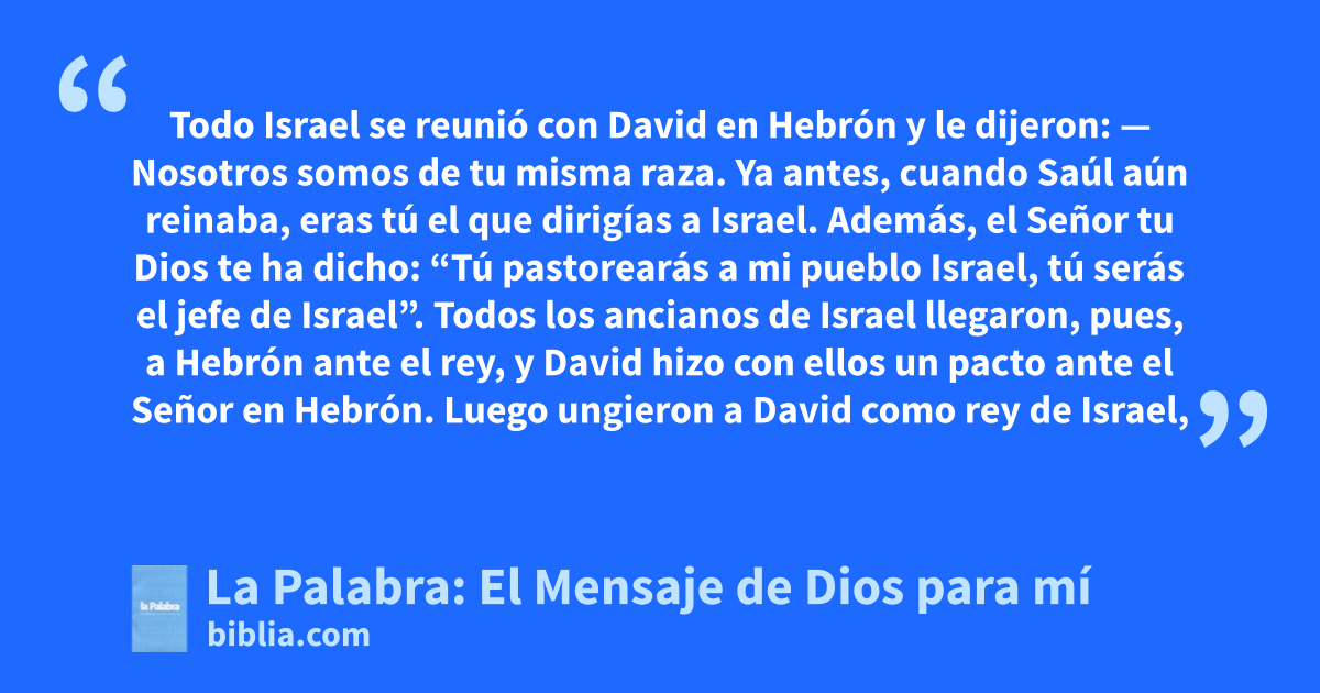 — Nosotros somos de tu misma raza. 2 Ya antes, cuando Saúl aún reinaba, eras tú el que dirigías a Israel. Además, el Señor tu Dios te ha dicho: “Tú pastorearás a mi pueblo Israel, tú serás el jefe de Israel”.