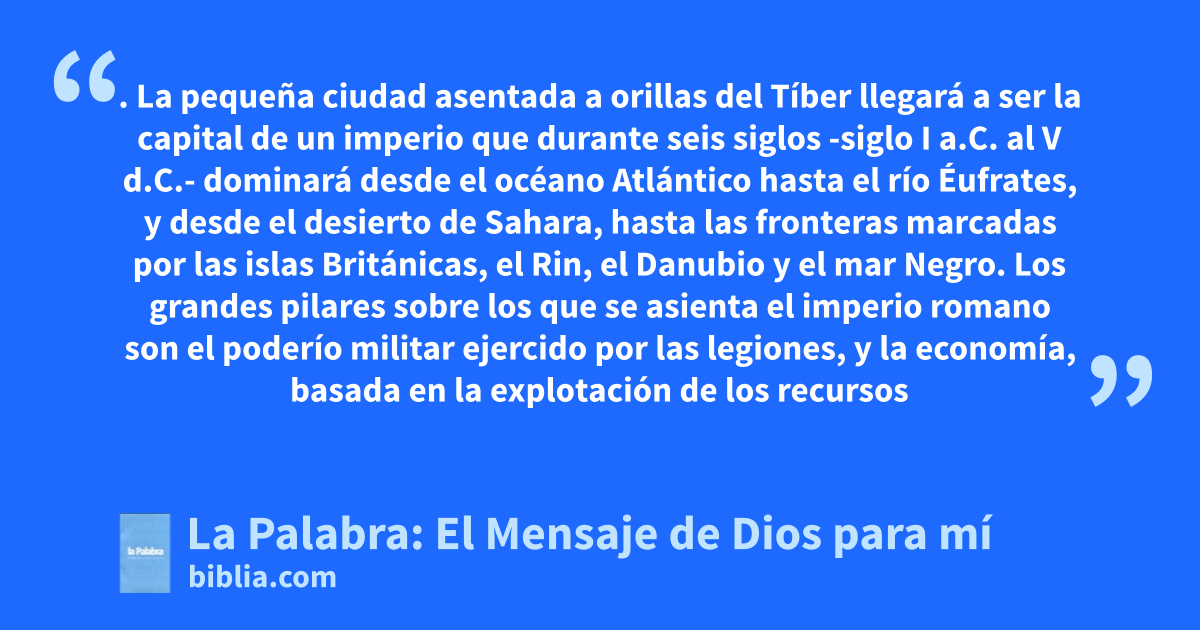 Roma; Imperio romano. La pequeña ciudad asentada a orillas del Tíber llegará a ser la capital de un imperio que durante seis siglos -siglo I a.C. al V d.C.- dominará desde el océano Atlántico hasta el río Éufrates, y desde el desierto de Sahara, hasta las fronteras marcadas por las islas Británicas, el Rin, el Danubio y el mar Negro. Los grandes pilares sobre los que se asienta el imperio romano son el poderío militar ejercido por las legiones, y la economía, basada en la explotación de los recursos que aportan las provincias conquistadas y en el sistema de tasas e impuestos. Elementos determinantes del sistema económico son la esclavitud como régimen laboral y la gran movilidad favorecida por una amplia red de comunicaciones por tierra –las célebres calzadas– y por mar –las rutas a través del mar Mediterráneo–. La administración romana se encarga de garantizar el buen funcionamiento del sistema y concede una cierta independencia a las autoridades locales; pero supervisa con rigor e interviene sin miramientos cuando le parece oportuno. Roma asumió gustosamente la cultura helenista, que era ya dominante en todo el Oriente, hasta el punto que el griego fue durante mucho tiempo el idioma común del Imperio, cooficial con la lengua latina.